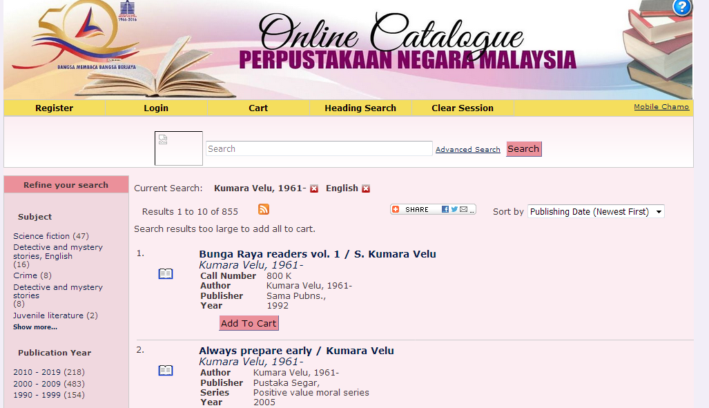 Most of my books are found in libraries across Malaysia,  Singapore, and Brunei.